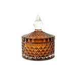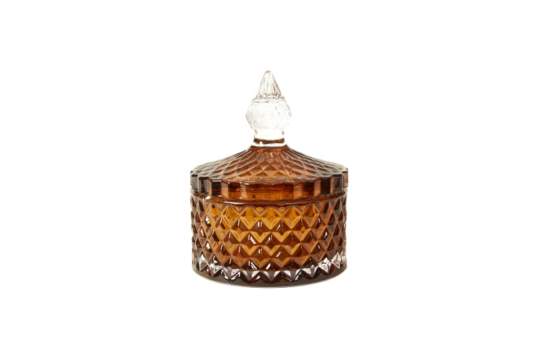 Tilføj et elegant og tidløst element til dit hjem med denne krukke med låg i mørkebrunt glas. Krukken har et dekorativt harlekin-mønster, som giver et eksklusivt udtryk og passer perfekt ind i både moderne og klassiske indretninger.