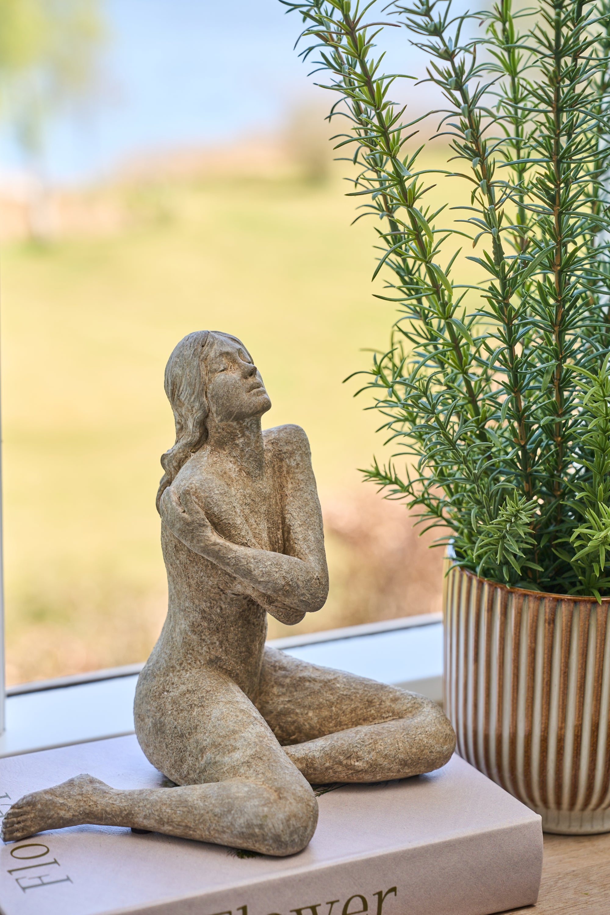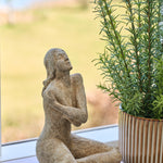 Giv dit hjem et kunstnerisk og stilfuldt touch med denne figur af en kvinde med arme over kors. Fremstillet i polyresin i farven natural grey, kombinerer figuren elegance med et moderne, nordisk udtryk.