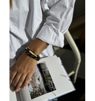 Lakeret armbånd i bøffelhorn fra Maison Kizo Sort