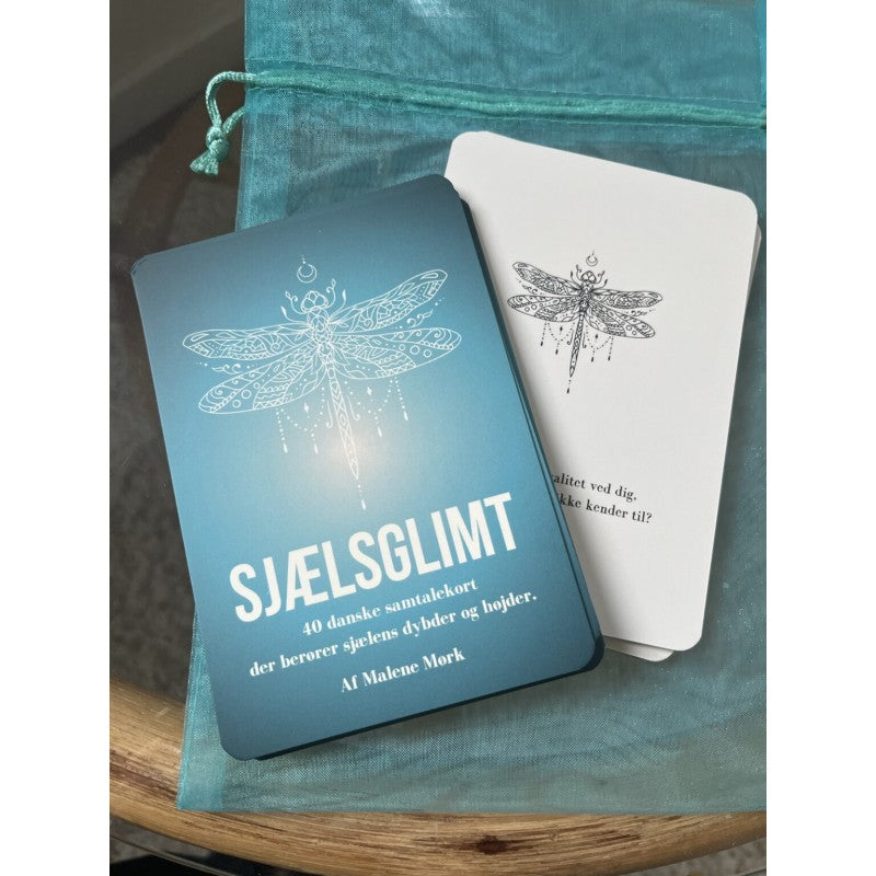 SjælsGlimt er et smukt, feminint og rosa kortsæt med 40 svanemærkede kort, designet af Malene Mørk. Kortene fungerer som samtalestartere og inviterer til refleksion og dybe samtaler om de vigtigste spirituelle emner.