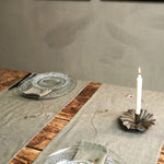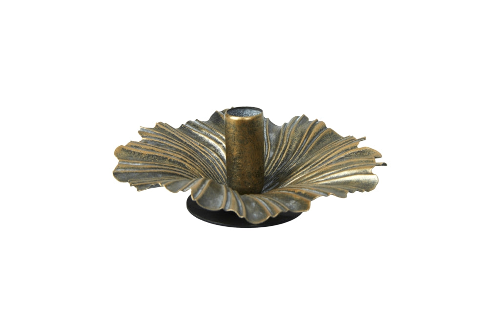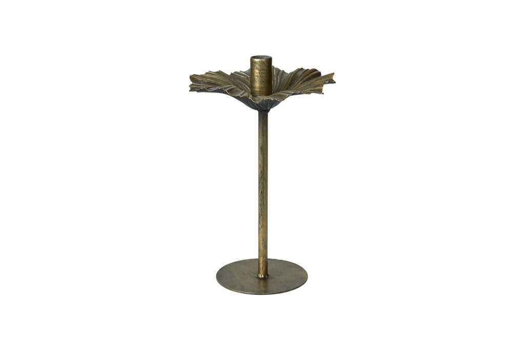 Skab et dekorativt og stilfuldt fokuspunkt i dit hjem med denne bladformede stage i metal med smuk antik guld finish. Den unikke form tilføjer både elegance og personlighed, og stagen fungerer perfekt som dekoration med lys eller som et dekorativt element alene.