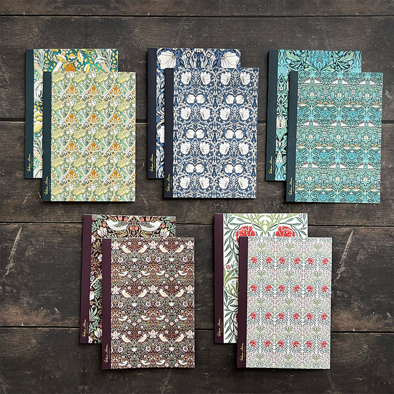 Disse elegante William Morris-notesbøger prydes af restaurerede, historiske mønstre fyldt med naturens detaljer. De er perfekte til skole, arbejde, studier eller som personlig dagbog, og passer let i både taske og håndbagage.