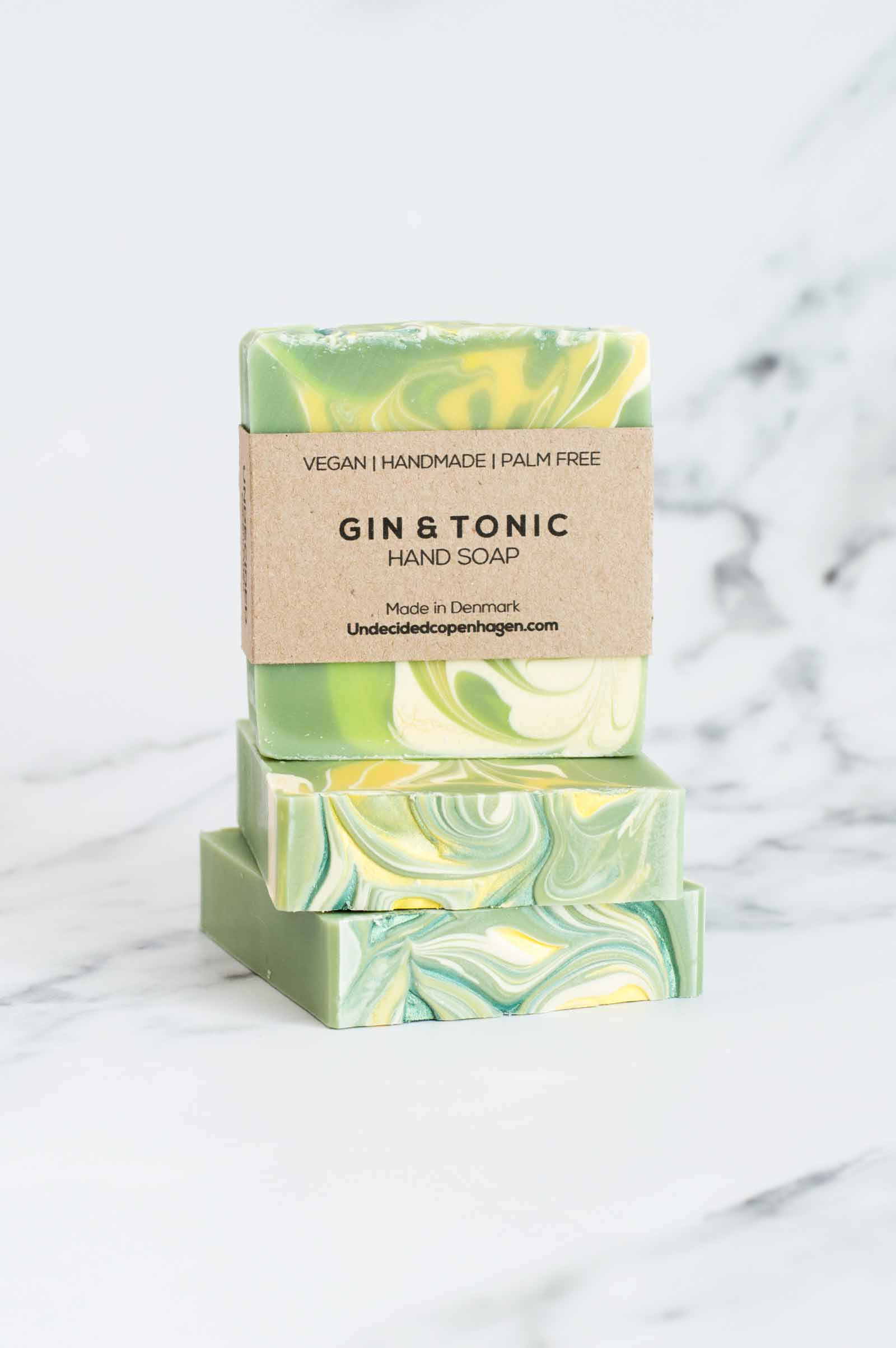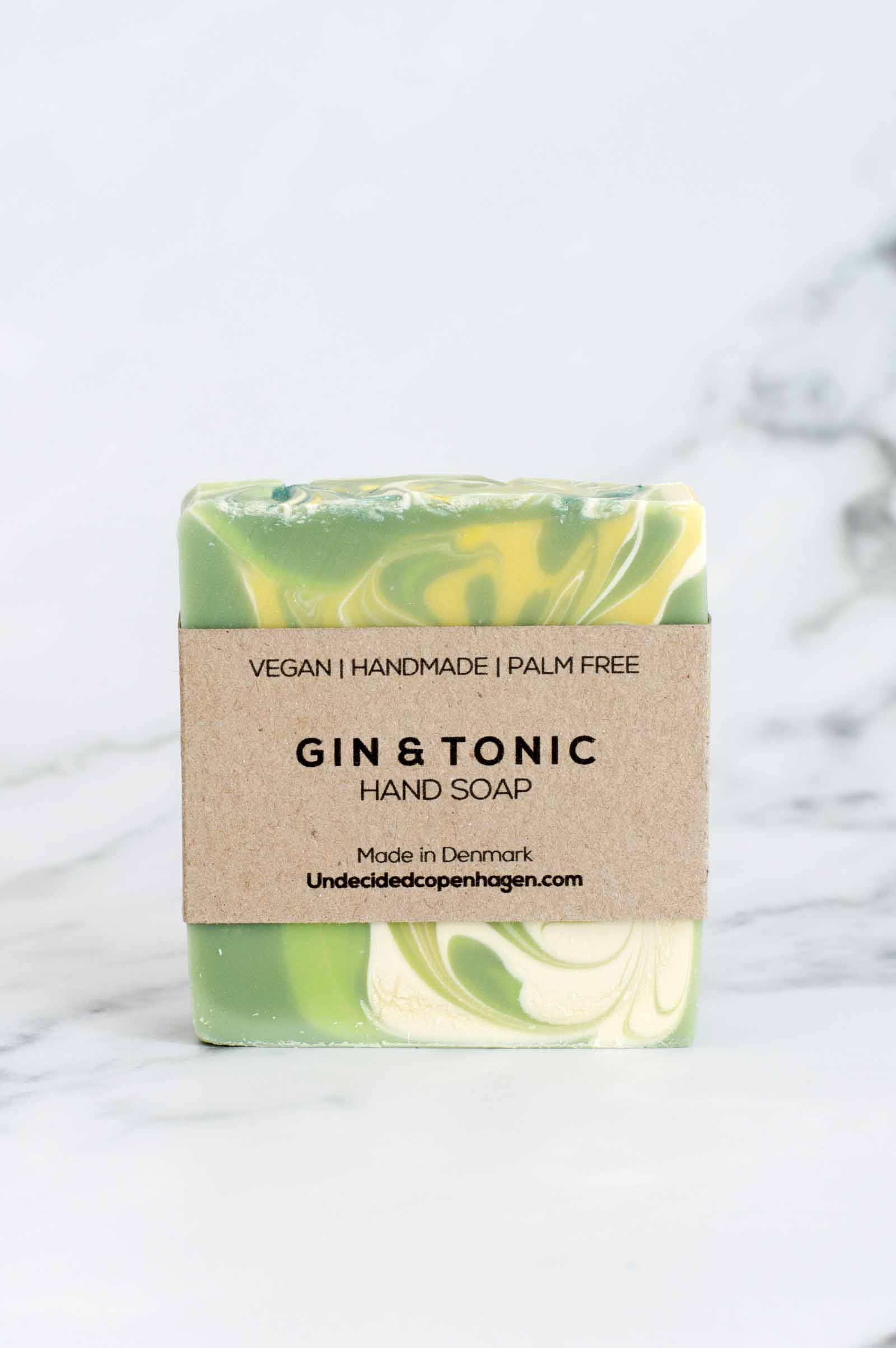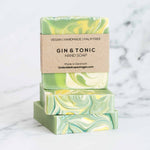 Forkæl dine hænder med den håndlavede Gin & Tonic sæbebar, lavet med økologisk olivenolie, kokosolie og lokalt produceret økologisk rapsolie. Den giver et rigt skum, en ren følelse og et flot udtryk på badeværelset.