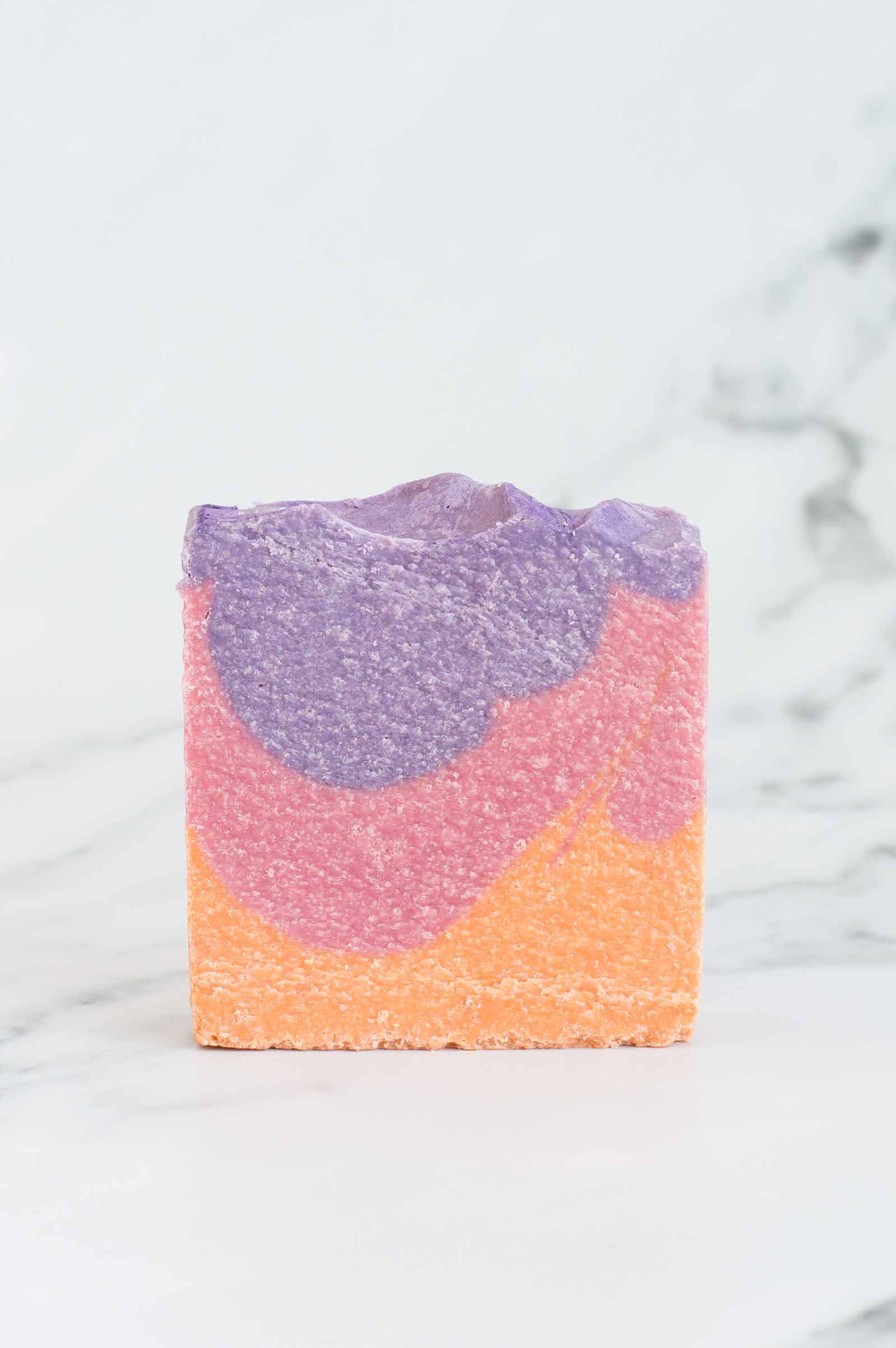 Sæben er veganervenlig, palmeoliefri og håndlavet i små partier, så hver bar er unik.