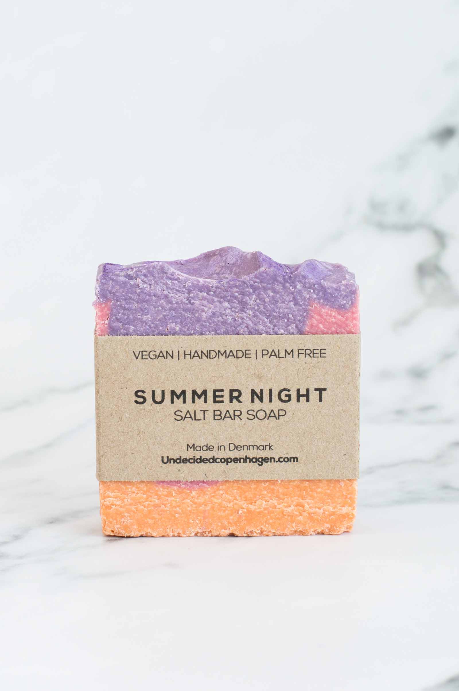 Oplev en blid og eksfolierende rens med den håndlavede Summer Night saltsæbe, lavet med lyserødt Himalaya-salt, økologisk olivenolie, økologisk kokosolie og lokalt produceret rapsolie. Saltet giver både mild peeling og ekstra lang holdbarhed, så sæben varer længere end almindelige barer.
